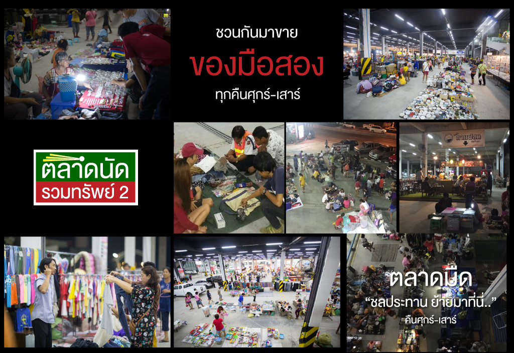 เปิดแล้ว... บรรยายกาศตลาดนัดยามค่ำคืนบนถนนติวานนท์ ใต้อาคารสูงโปร่งสบาย ไม่ต้องกลัวฝนตก แหล่งนัดพบของคนชอบช็อปปิ้ง กับหลายร้อยร้านค้าและผู้คนมากมายที่ตลาดนัดรวมทรัพย์ 2 สะดวกสบายกับลานลอดรถ ตลาดมืดรวมทรัพย์ 2 โดยทีมงานตลาดมืดชลประทาน พบกับตลาดนัดของมือสอง ทุกคืนวันศุกร์และเสาร์